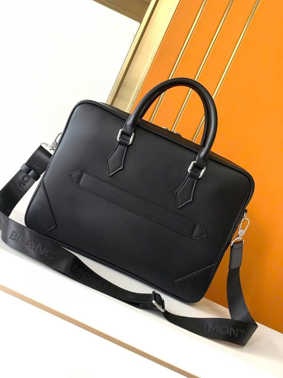 Cặp công sở Mont Blanc đen da trơn CS10