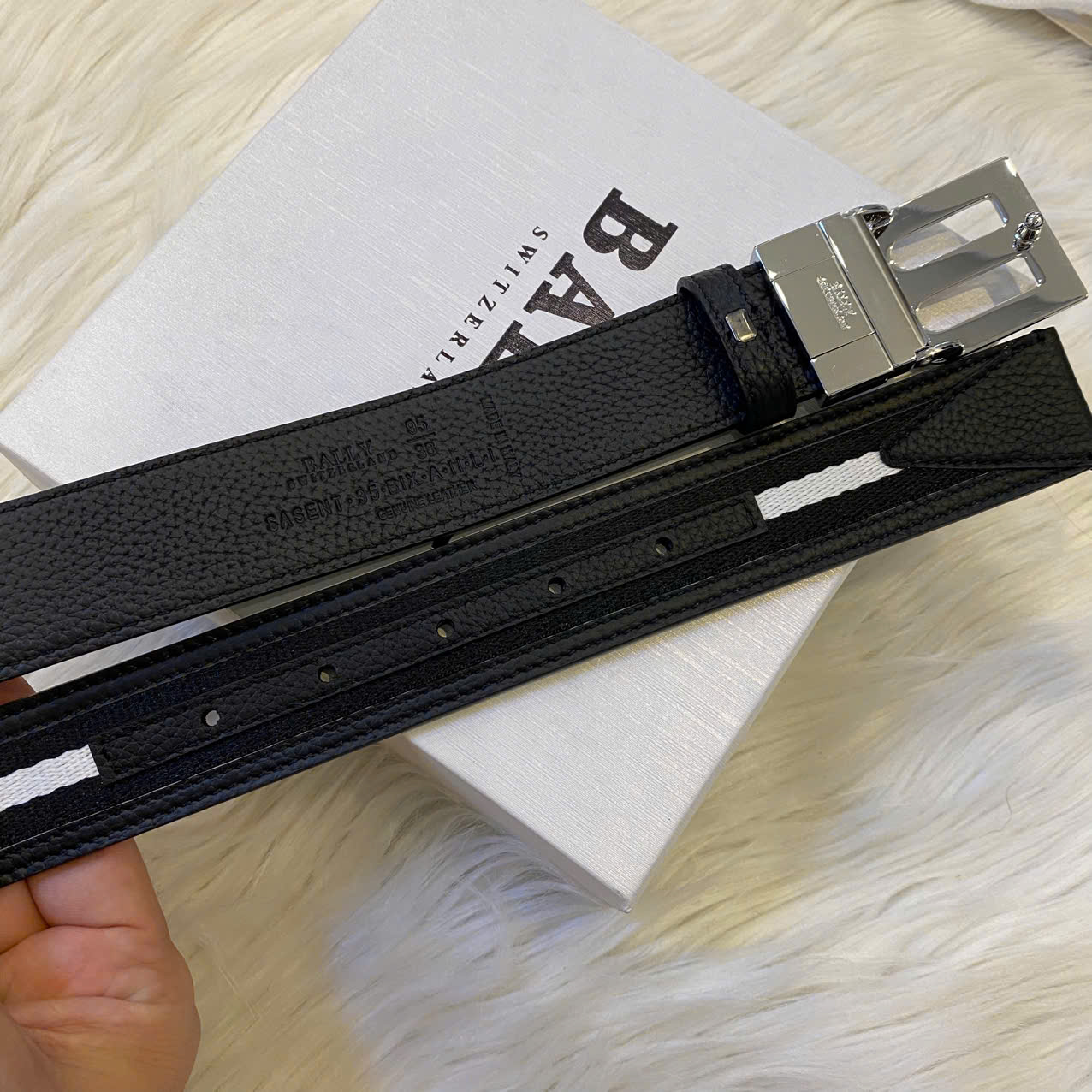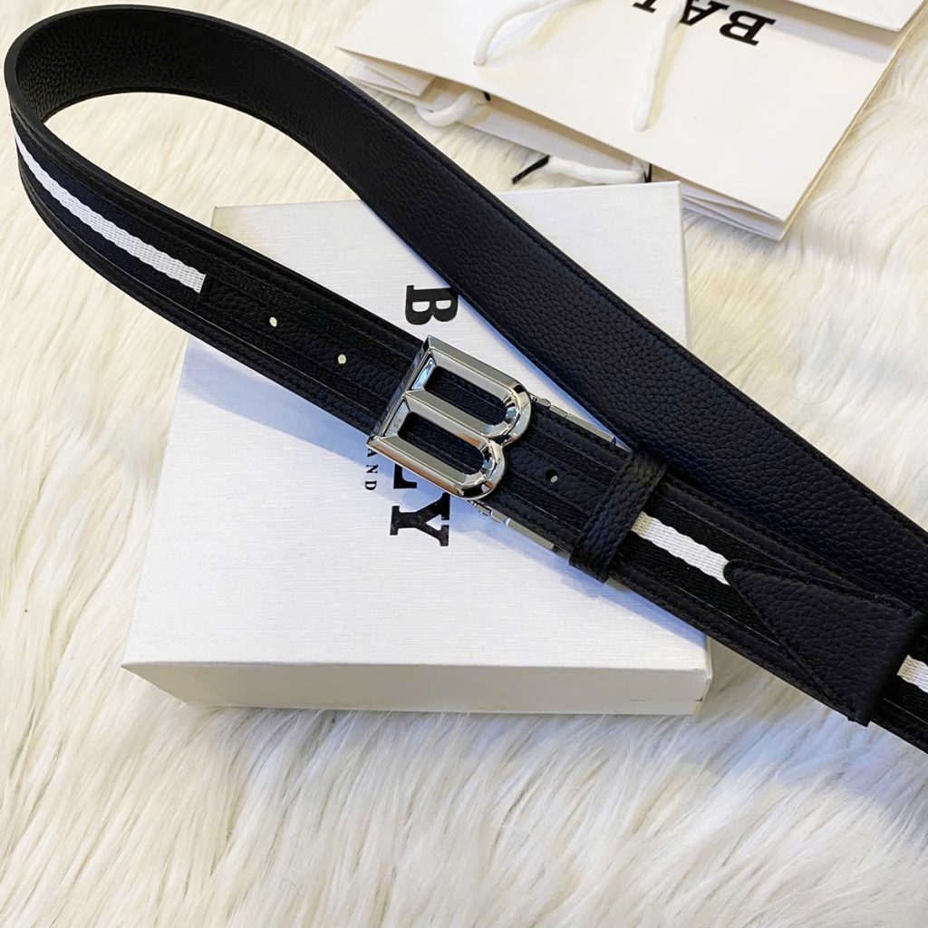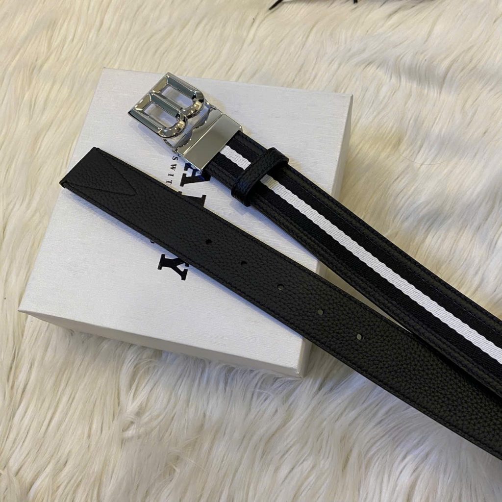 Dây Lưng Bally B logo 3.5cm Black and Write BL009